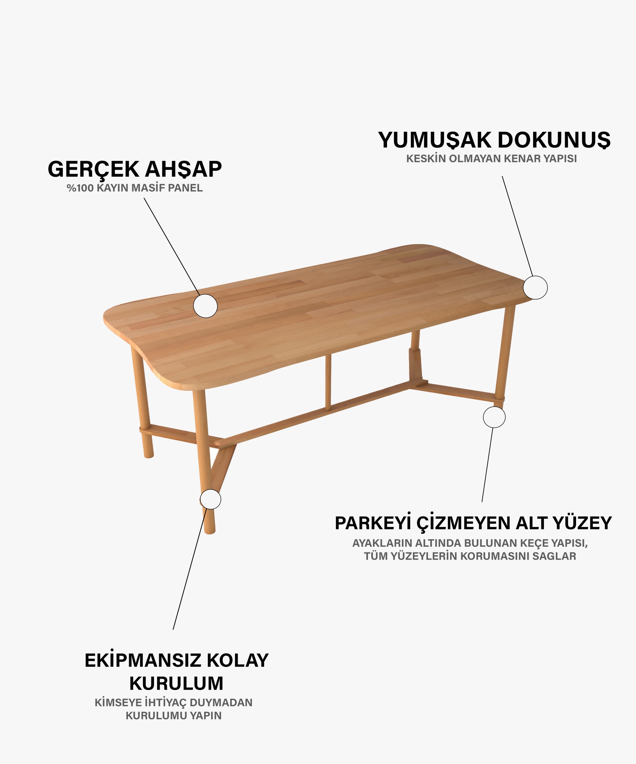 - Yüksek nemli ortamlardan uzak tutunuz. Ahşap doğal yapısı gereği çalışabilir (genleşme veya daralma gösterebilir).