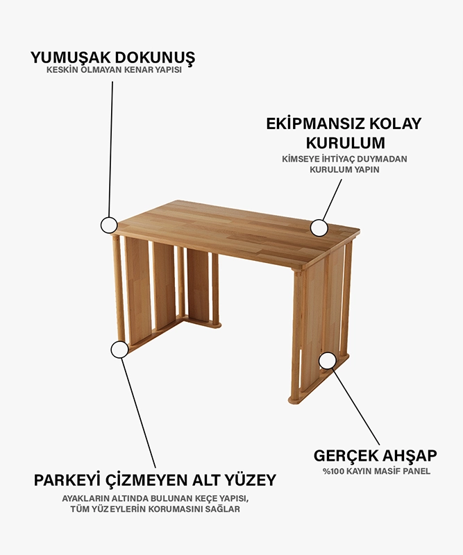 - Yüksek nemli ortamlardan uzak tutunuz. Ahşap doğal yapısı gereği çalışabilir (genleşme veya daralma gösterebilir).
