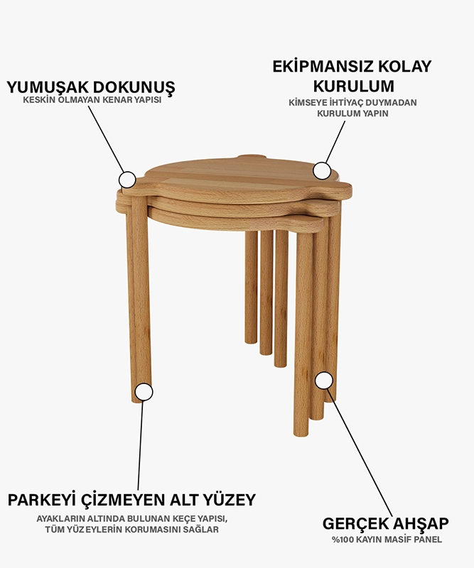 - Yüksek nemli ortamlardan uzak tutunuz. Ahşap doğal yapısı gereği çalışabilir (genleşme veya daralma gösterebilir).